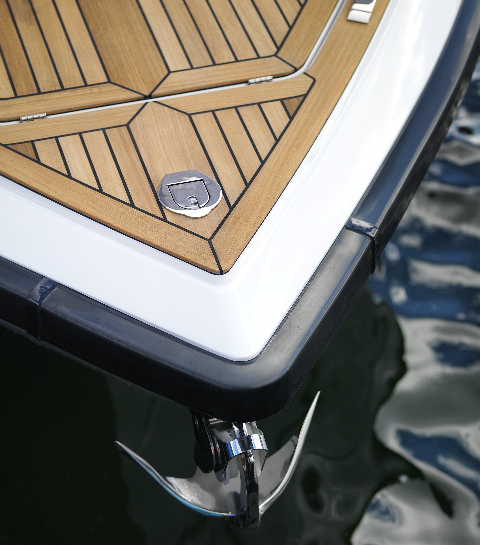 Her rapier sharp deep v-hull is constructed using the very latest resin-infused techniques for optimum strength, weight reduction, fuel efficiency - and a exhilarating fast top speed of over 45 knots.